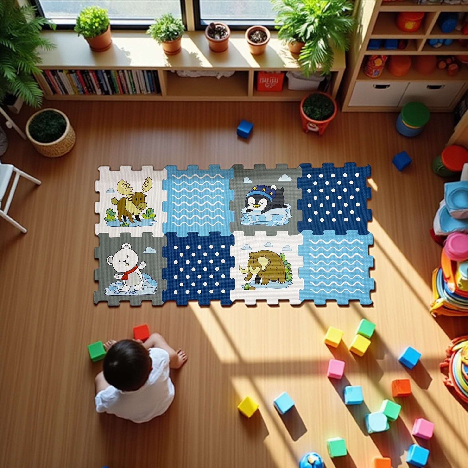 Create a safe, fun, and engaging play space for your little one with the Printed Play Mat – Arctic Animals Series. Featuring adorable arctic friends like penguins, polar bears, mammoths, and moose, this colorful mat not only adds joy to playtime but also sparks early learning and imagination.