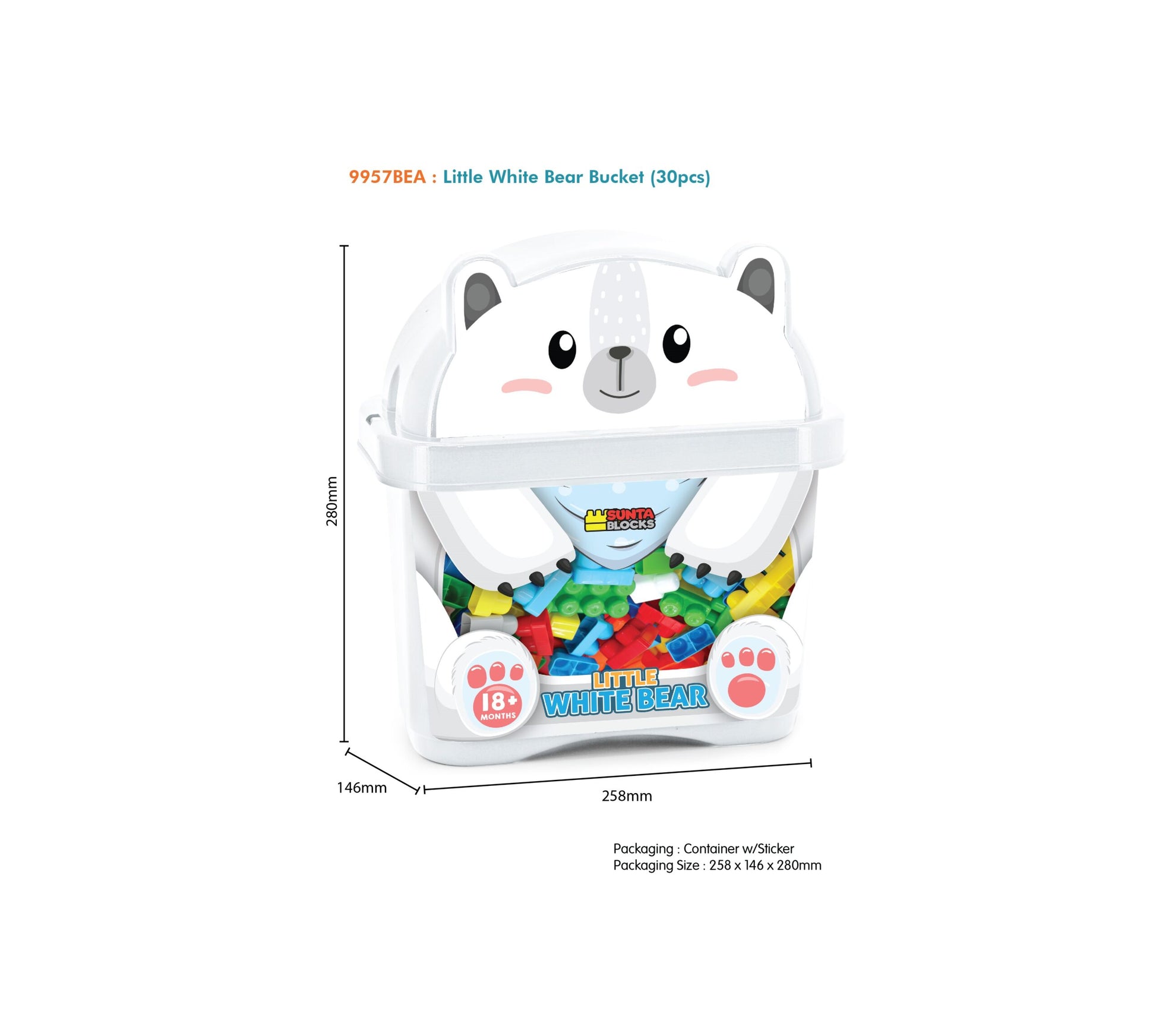 Sunta Little White Bear Building Blocks – 30 Colorful Pieces in Cute Storage Box (18M+)